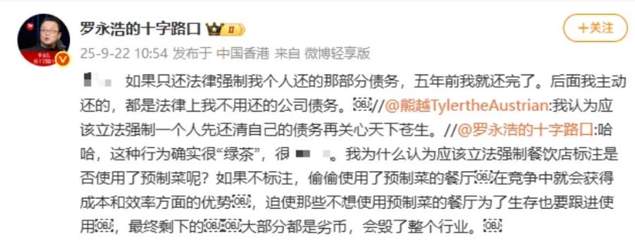 2025年9月22日最安全的线上配资平台,针对网友质疑的罗永浩债务问题,罗永浩本人转发微博回应。他表示:“如果只还法律强制我个人还的那部分债务,五年前我就还完了。后面我主动还的,都是法律上我不用还的公司债务。”