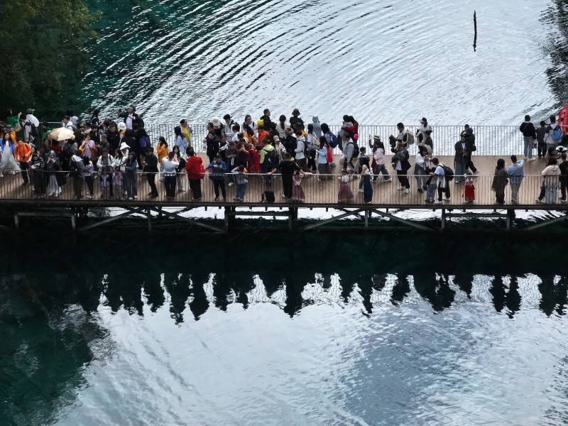 水是九寨沟的灵魂。五花海的斑斓色彩,如大地挥洒的油画;长海的静谧深邃,似岁月沉淀的史诗。2025年,九寨沟仅接待入境游客显著上升,截至11月22日,达到475765人次,同比上涨43.82%,多元文化在这里相生相融,彰显了九寨沟的全球影响力。