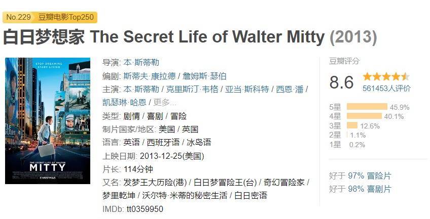 在这段冒险之旅,男主前往格陵兰,搭程一名醉汉的直升飞机跳入暴风雨的海与鲨鱼战斗、到火山爆发的冰岛,攀登喜马拉雅山...这一路的壮丽美景,每一帧景色都是让人神往的梦想旅行地!