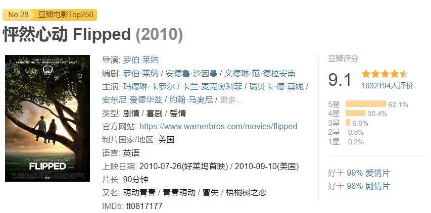 一对小孩,一颗枫树,简单而又美好的故事。这部电影大概是爱情最初的模样,电影首映距今已十余年,但直至今天,它仍能无数次地勾起观众的青春情愫。