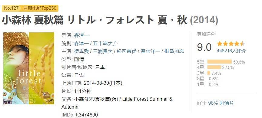 《小森林》就是这样一部电影,没有起伏跌宕的剧情,画面清新淡雅,风景沁人心脾,音乐温暖舒心,足以治愈那颗浮华烦躁的心。